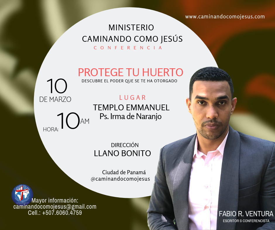 Este 10 de Marzo nos vemos en el TEMPLO EMMANUEL, de la Ps. Irma de Naranjo. Es tiempo de PROTEGER TU HUERTO, el tiempo para Descubrir el poder que se te ha otorgado llegó. Así que es tiempo de levantarse y pelear por lo que nos pertenece y tomar el lugar que Dios ha destinado para nosotros. Te Esperamos, asiste con toda tu familia.